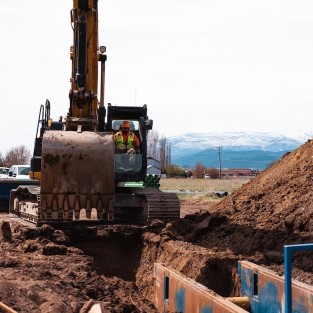 Baggern von Kanälen oder Stromleitungen, das Errichten von Aufbauten ...